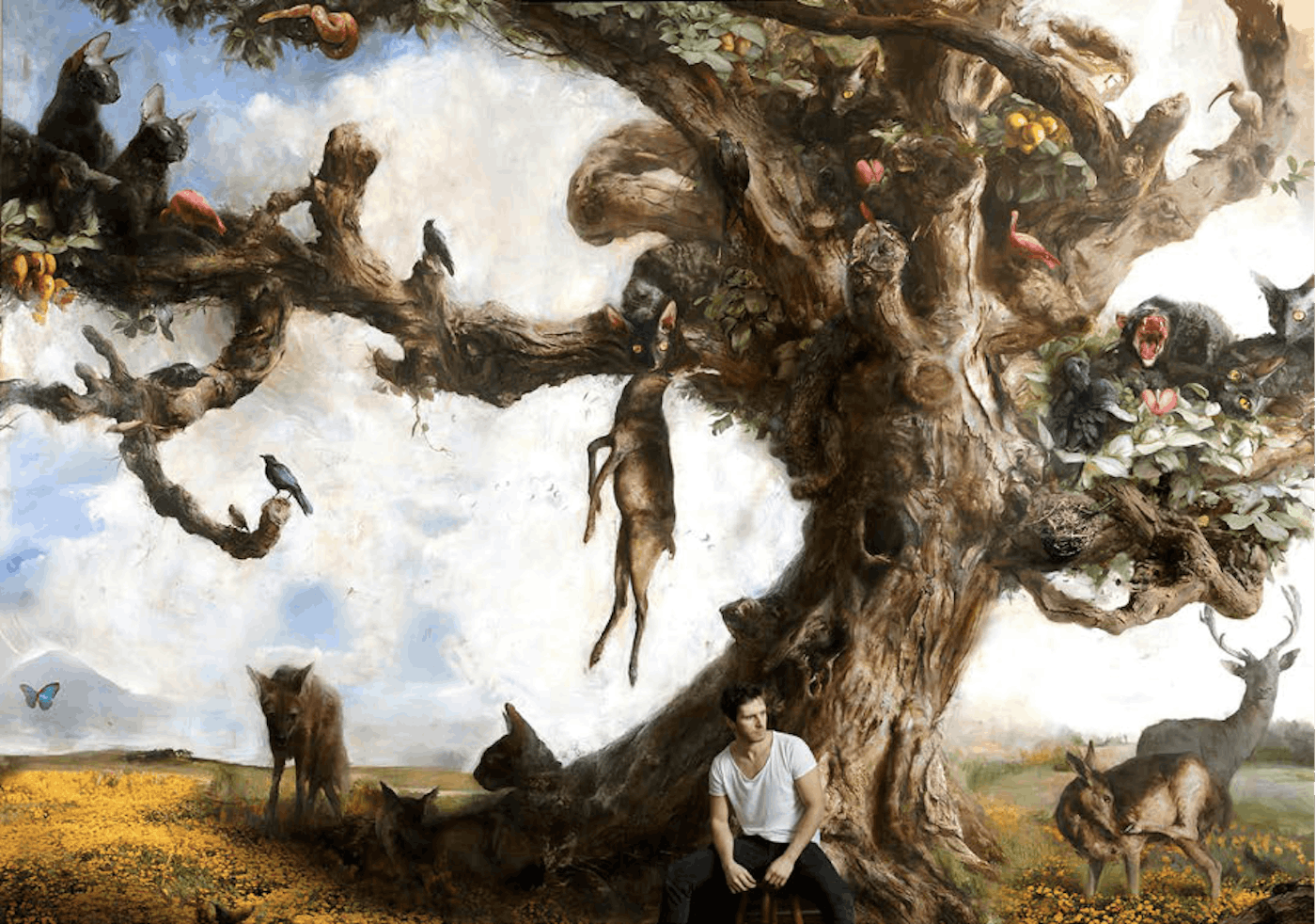 Uno mira al artista Guillermo Lorca e inevitablemente piensa que sus enormes obras barrocas no casan con un artista tan joven y tan del siglo XXI. Aquí, su primera maravillosa contradicción porque sí, el trabajo de este pintor chileno esconde muchas más: cercano, onírico, violento, inocente, incómodo, misterioso… Muchas capas, mucha imaginación y virtuosismo a gran escala. Bienvenido a su fascinante y complejo mundo.